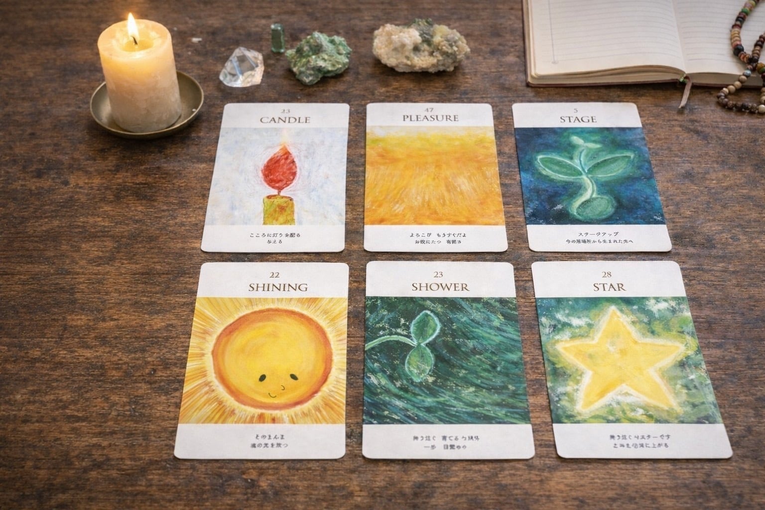 -特典の「じぶんのまんなかを生きるあなたに寄り添うカード」、ノート付き